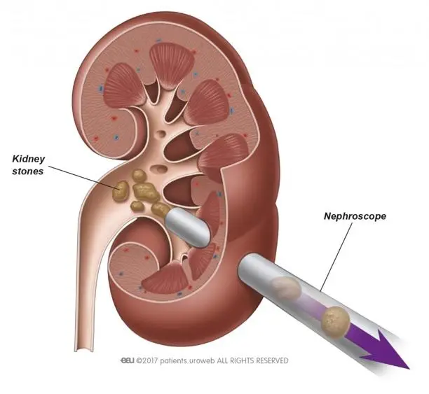 Cálculos não tão grandes podem ser retirados sem fragmentação, mas cálculos maiores devem ser fragmentados com alguma forma de energia (balística, ultrassônica ou laser) para que possam ser retirados.