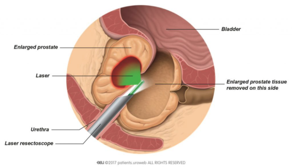 A enucleação endoscópica da próstata com laser Holmium (Holep) é uma opção de tratamento comum para HPB na Europa e mais recentemente nos EUA e Brasil. O laser corta o tecido da próstata ao mesmo tempo em que o calor emitido pelo laser fecha os vasos sanguíneos. É por isso durante este tipo de cirurgia há menos sangramento.